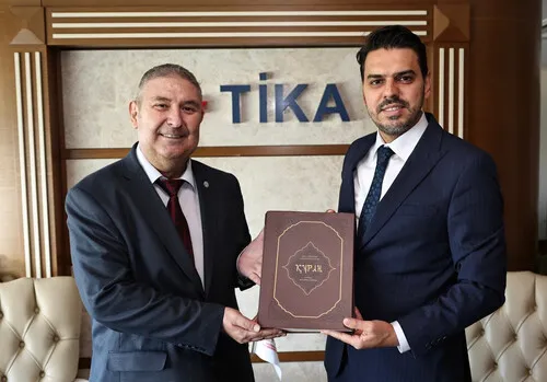 Görüşme sonunda Avrasya Yazarlar Birliği başkanı TİKA Başkanı Sayın Abdullah Eren’e 10.yy. yazılan Kuran’ı Kerimin Türkçe Mushaf’ının bir nüshasını hediye ederken, Nurhan Buhan özel baskı yayımlanan Türk Dünyası Atlası konulu bir kitap, Osman Çeviksoy ise imzalı eserlerini takdim ettiler.