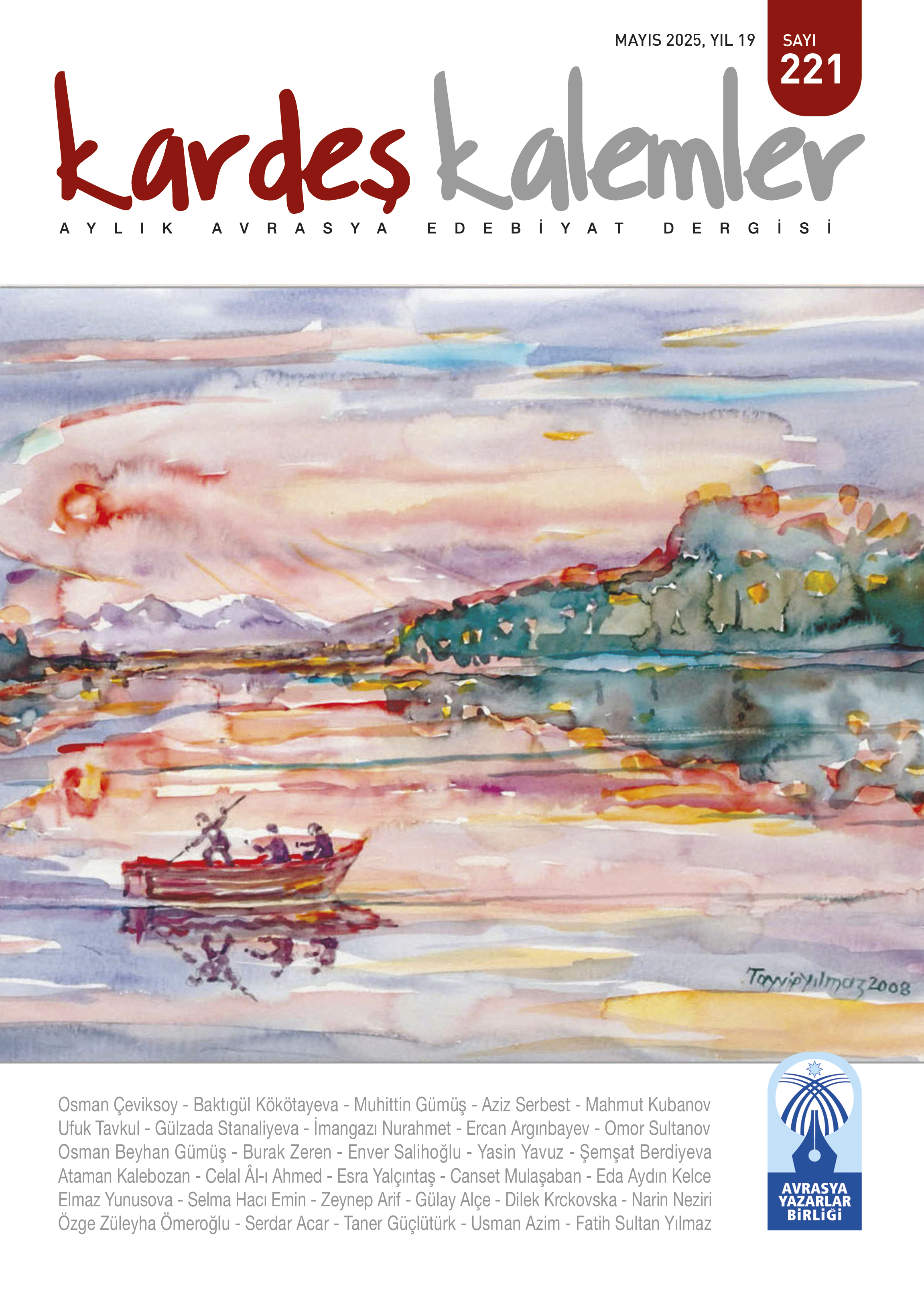 Sizleri, Türk dünyasının ortak edebiyat dergisi Kardeş Kalemler’in 221. Sayısıyla, gönül coğrafyamızdan bereketli, vefalı, taze bahar esintileriyle selamlıyoruz. Bu sayımızda Kosova’dan Özbekistan’a, Kırım’dan İran’a kadar on bir ülkeden gönüllerinize dokunacak ürünler sunduk.
