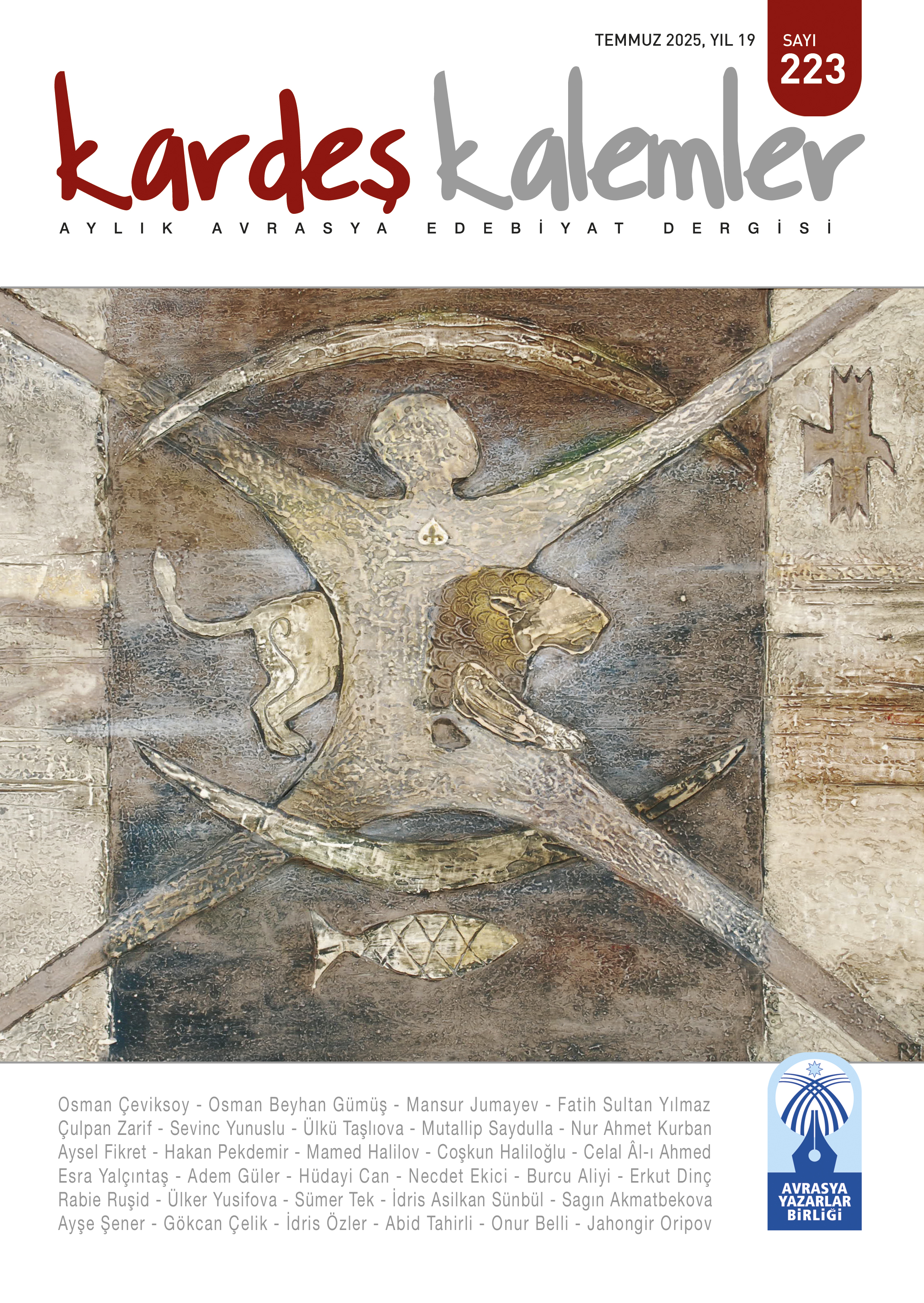 Gönül coğrafyamızın farklı köşelerinden bize ulaşan selamlarla birlikte kültürel güzelliklerimizi de yansıtan eserlerle donattığımız ortak edebiyat dergimiz Kardeş Kalemler’in 223. sayısında buluşmanın mutluluğunu yaşıyoruz.
