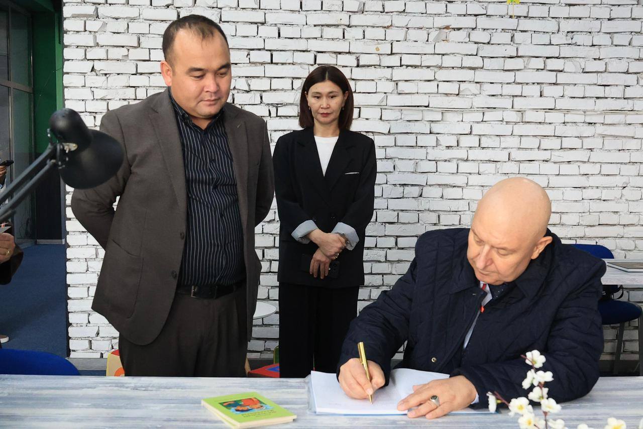 Avrasya Yazarlar Birliği (AYB) Başkanı Ufuk Tuzman Türkistan Bölgesi Kültür Müdürlüğüne bağlı, Ibıray Altınsarin Balalar Kütüphanesi Müdürü Rısbek Letayev'in daveti üzerine Kazakistan'ın en büyük çocuk külliyatlarından birini ziyaret etti.