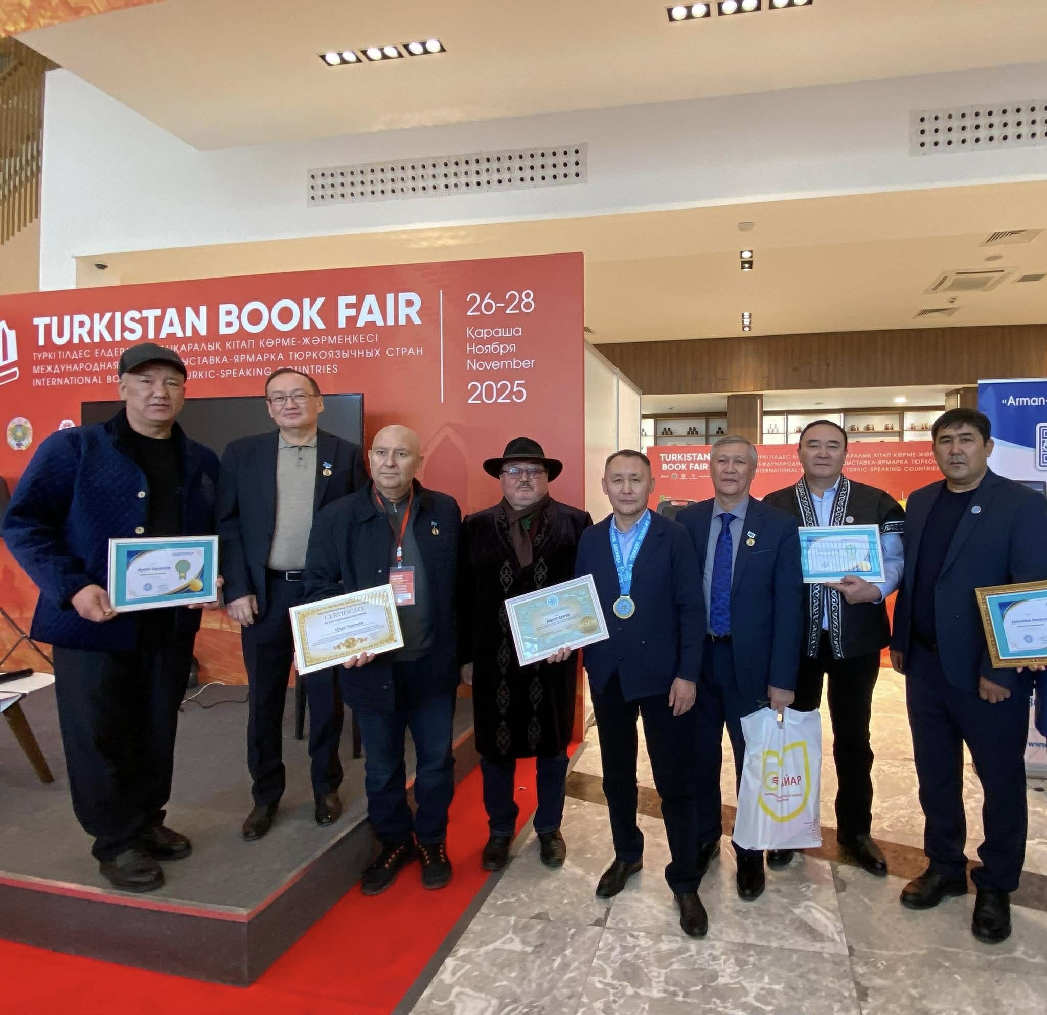 Türkistan'da gerçekleştirilen "I. Uluslararası Türk Dünyası Kitap Fuarı" kapsamında düzenlenen ödül merasiminde Türk dünyası edebiyatlarına katkı sunan kurum ve kuruluş Başkanlarına ödülleri akademi başkanı Ulıkbek Esdaulet tarafından taktim edildi.